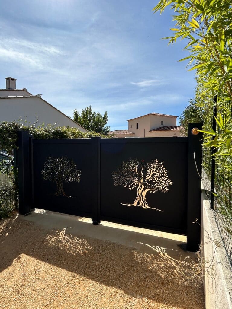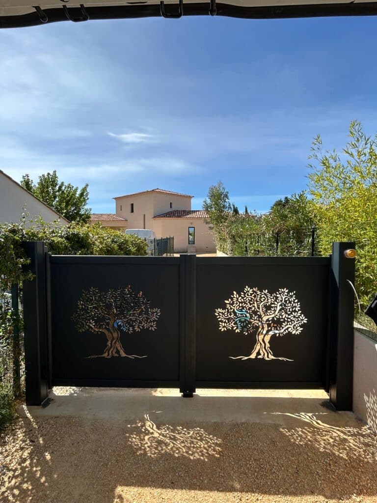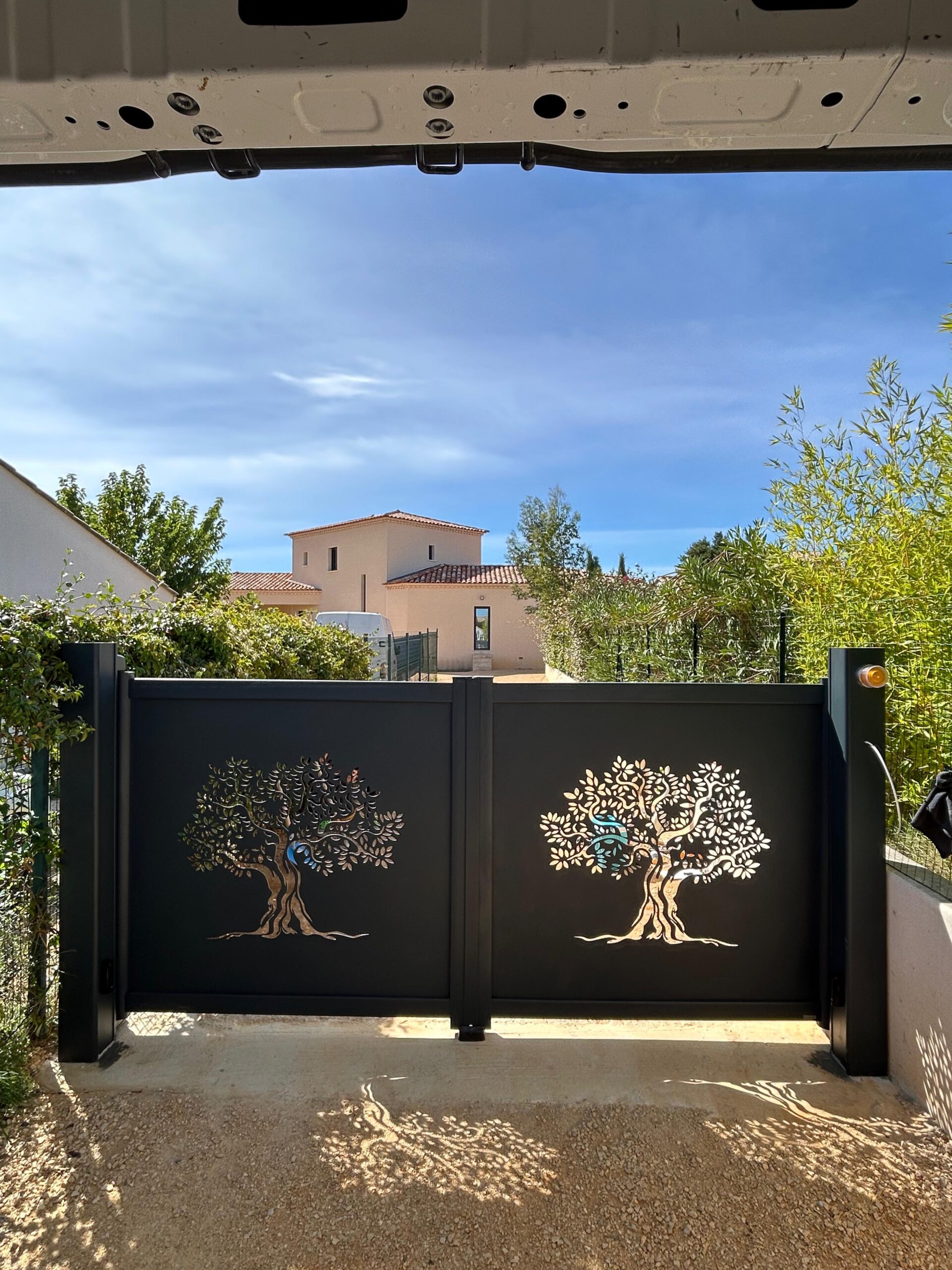 Portail sur-mesure motif Olivier par AJC MENUISERIES